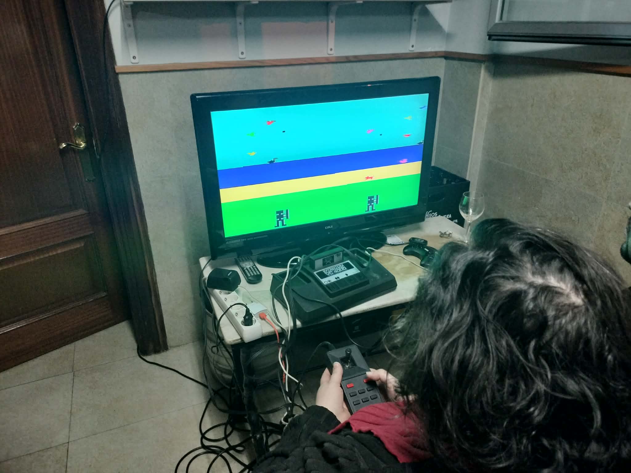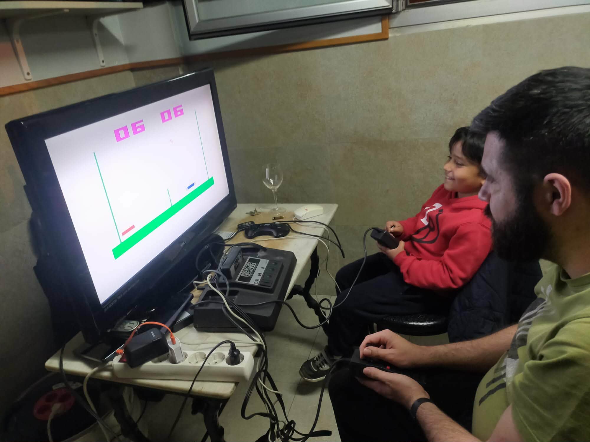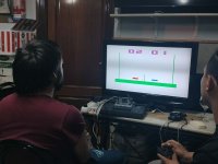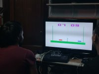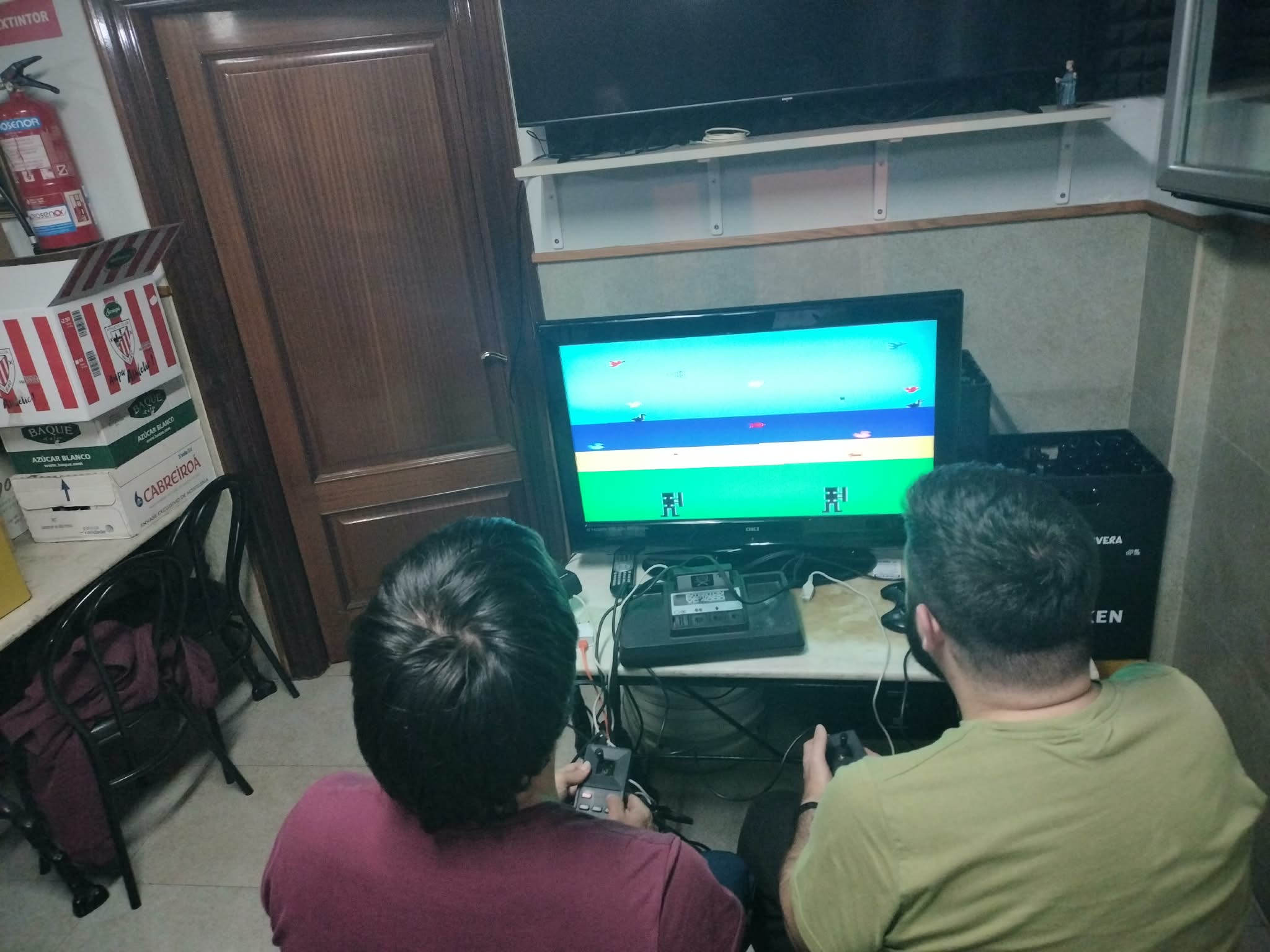 We started playing Hunting; a good game. A fun game where you have to shoot the birds that fly past you. Try to hit the ones that fly higher up to get more points. We play in pairs. Then we played Paddle in the Sports cartridge. Good and interesting game. In this game it is important to maintain concentration to hit the ball well and get it over the net. Here Egoitz won one match and Lander another one with the same difference in points. The last game was Tank Battle; one of the first tank video games. In this game you have to aim well and shoot the enemy tank. We played in pairs and without walls. Egoitz won both his games, and Lander also managed to win his.